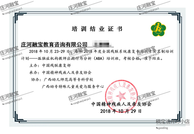 孤獨(dú)癥機(jī)構(gòu)骨干教師培訓(xùn)證書