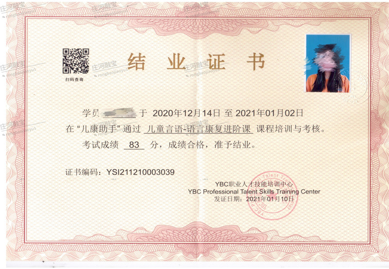 兒童語言-語言康復進階課結(jié)業(yè)證書